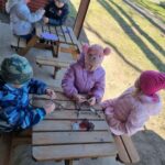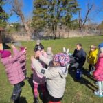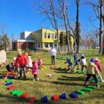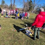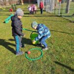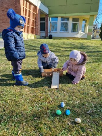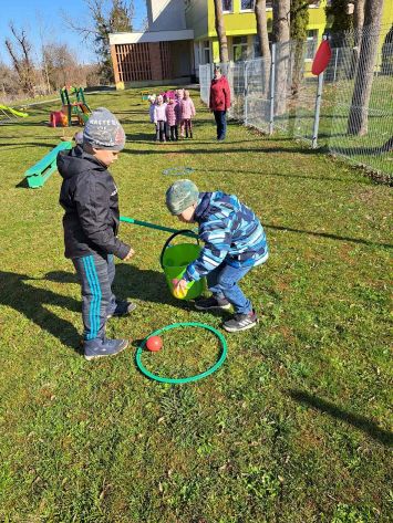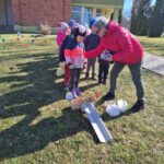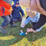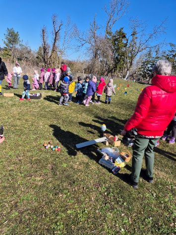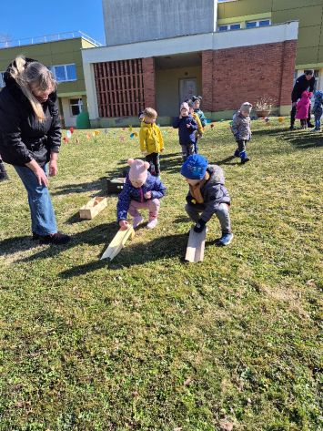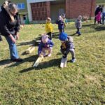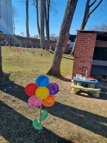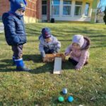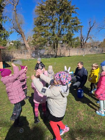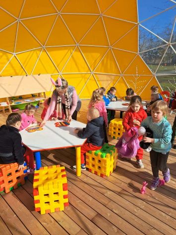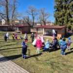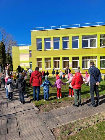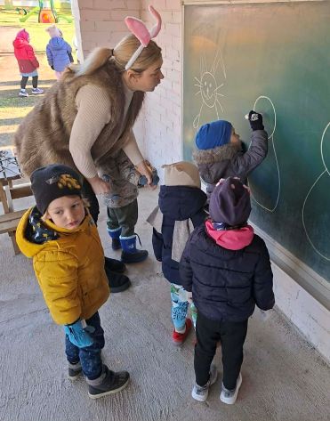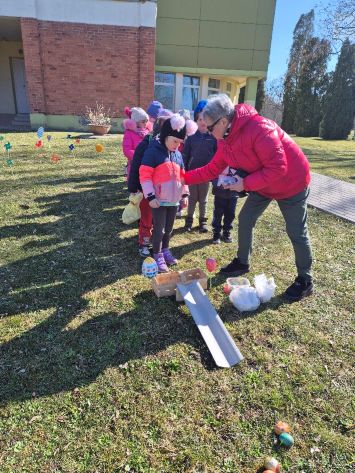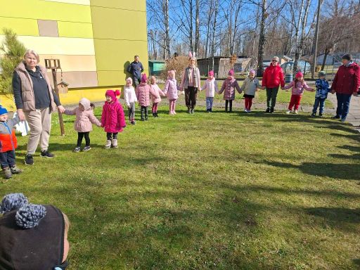 Kiškių nuotykiai darželio kieme prasidėjo linksmai ir spalvingai! Vos tik kieme suskambo nuotaikinga muzika, visi vaikai susibūrė į didelį ratelį. Smalsios akytės klausėsi pasakojimo apie ką tik praėjusią šventę – Velykas. Vaikai dalijosi mintimis: kas gi margina kiaušinius? Po smagaus įžanginio pokalbio, visos vaikų grupės iškeliavo į skirtingus nuotykius. Vieni aplankė Kiškio trobelę, kur laukė jaukios ir kūrybiškos užduotėlės. Kiti skubėjo į Kiškio dirbtuves – ten mažieji kūrėjai gamino, lipdė ir puošė. O patys vikriausi išbandė jėgas Kiškio lenktynėse – bėgo, šokinėjo ir rungėsi kaip tikri kiškučiai! Po visų veiklų atėjo metas vienai linksmiausių tradicijų – margučių ridenimui. Kiek džiaugsmo, kai kiaušiniai rieda, susiduria ir laimi greičiausias! O tada – spalvoti, lengvi ir stebuklingi muilo burbulai pakilo į dangų, sukeldami dar daugiau juoko ir nuostabos. Šventės pabaigoje visų grupių vaikai leidosi į ypatingą misiją – ieškoti Kiškio lauktuvių. Su dideliu entuziazmu ir šypsenomis jie tyrinėjo kiemą, kol galiausiai lobiai buvo rasti! Sugrįžę į savo grupes, vaikai vaišinosi, dalijosi įspūdžiais ir džiaugėsi nuostabia diena. Kiškių nuotykiai darželio kieme paliko daug gražių prisiminimų.